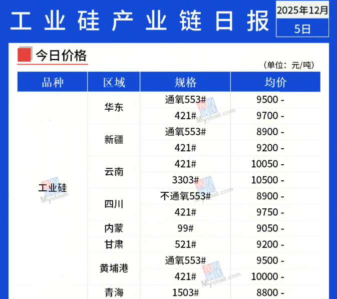 成本端来看,近期原料成本区间震荡持稳,北方新疆产区因冬季天气问题导致运力成本抬升,同时南方电价上调,全国成本均线上移,叠加下游低位拿货需求,同步支撑工业硅价格。
