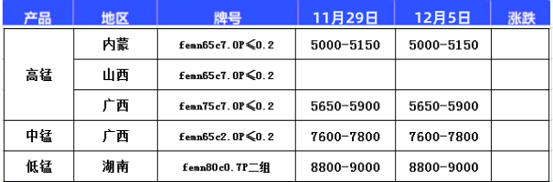 【金钢资讯】硅铁、锰铁、硅锰上周行情汇总(1201-1205)