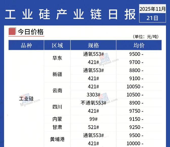 今日工业硅现货市场价格偏稳,今日工业硅主力合约一度涨破9500,涨幅近5%,收盘于9390。有机硅反内卷消息传出,在情绪带动下工业硅盘面探涨,盘面增仓58650手,资金流入明显。