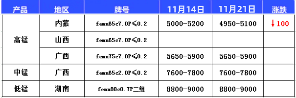 【金钢资讯】硅铁、锰铁、硅锰一周行情汇总(1117-1121)