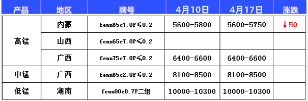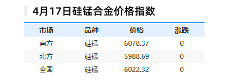【金钢资讯】硅铁、锰铁、硅锰一周行情汇总(0413-0417)